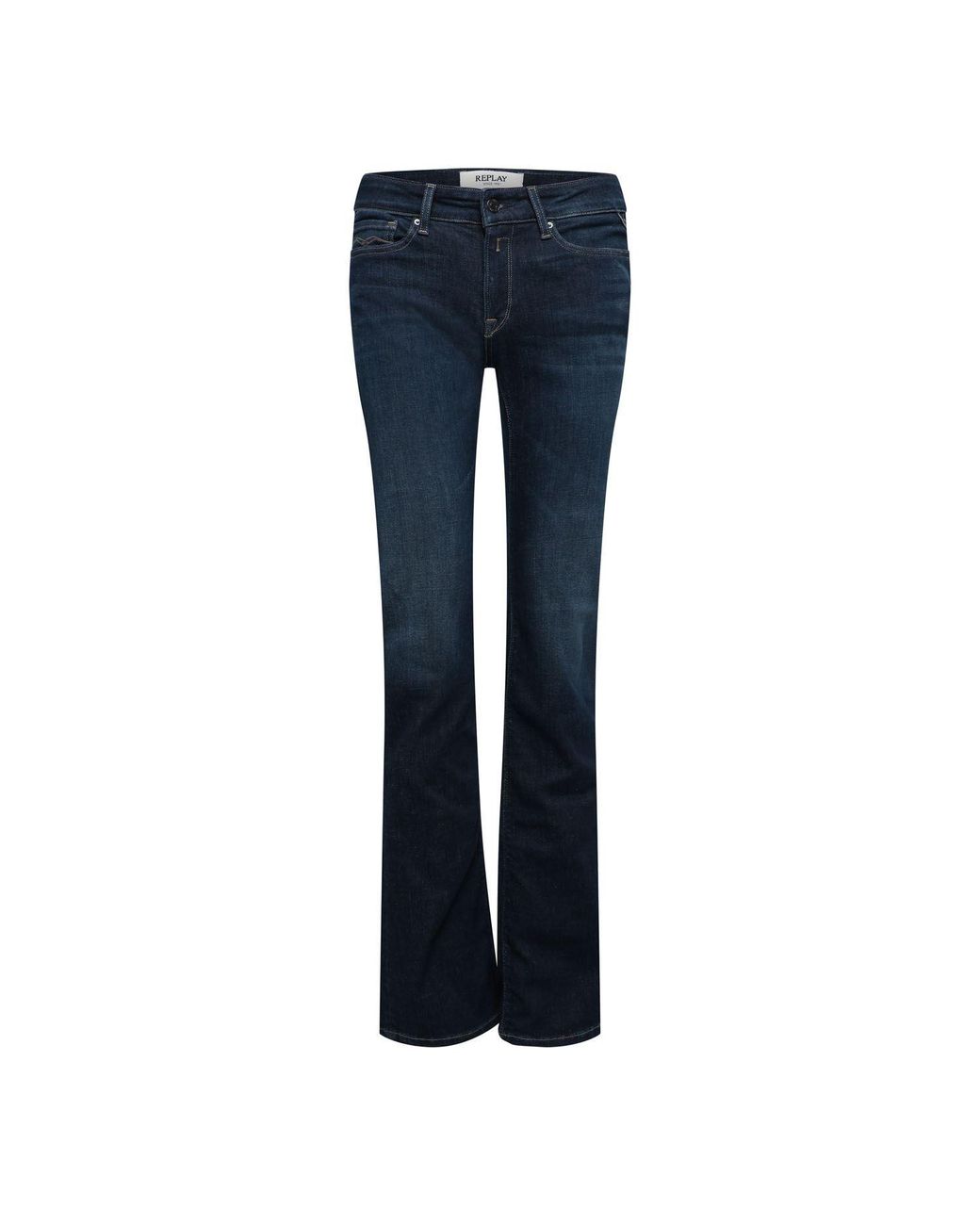 Womens Replay New Luz Bootcut Jeans in blue.- Zip fly and button fastening.- 5 pocket design.- Belt loops.- Contrast stitching.- One pocket bears R embroidery.- Coin pocket and back pockets our iconic gull-wing stitching.- One of the front pockets features a small branded insert.- Regular-rise waist a narrow leg from hip to hem and slightly flared hems.- Bootcut fit.- 72% Cotton 21% Modal 5% Polyester 2% Elastane.- Ref: WLH6899D709007 Colour: blue