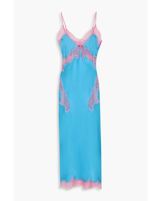 Women's Blue Jocelyn Embellished Lace-trimmed Satin Midi Slip Dress