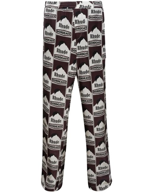 Bordeaux red/white silk pull-on style elasticated waistband all-over graphic print two side slash pockets two rear patch pockets straight hem Size: S. Gender: Male. Material:Silk. Colour: black