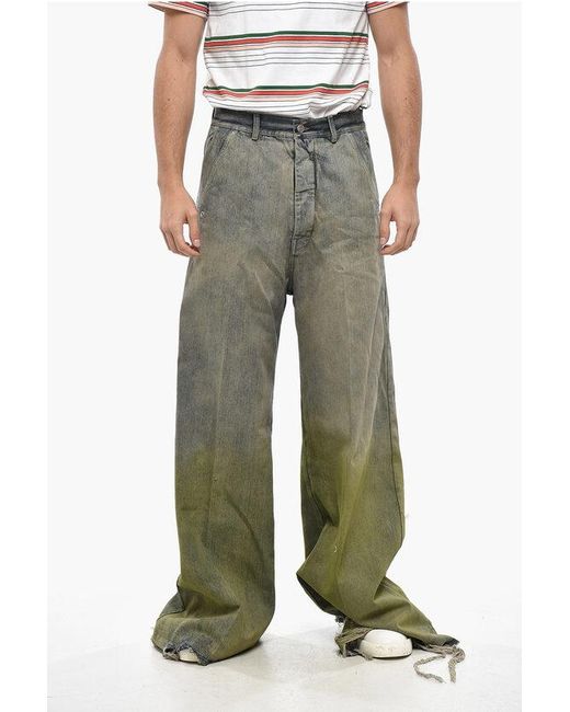 Men's Green Acid-Wash Wide-Leg Jeans With 38Cm Frayed Hem