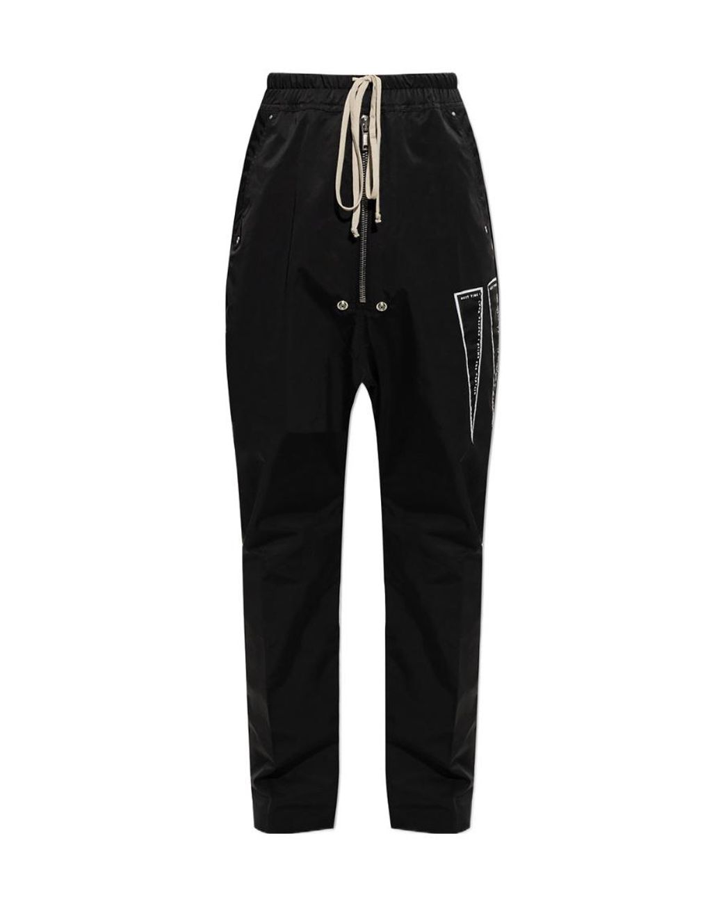 Logo casual trousers, slightly narrowed trouser legs, zipper placket, belt tightened with beige straps, white and black patches, two pockets on the front and two buttons on the back. Colour: black