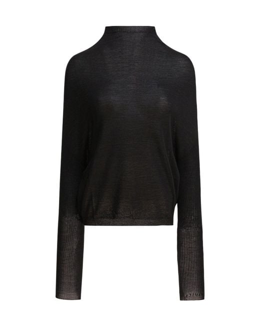 Virgin Wool Ribbed High Neck Long Sleeve Jumper - Black