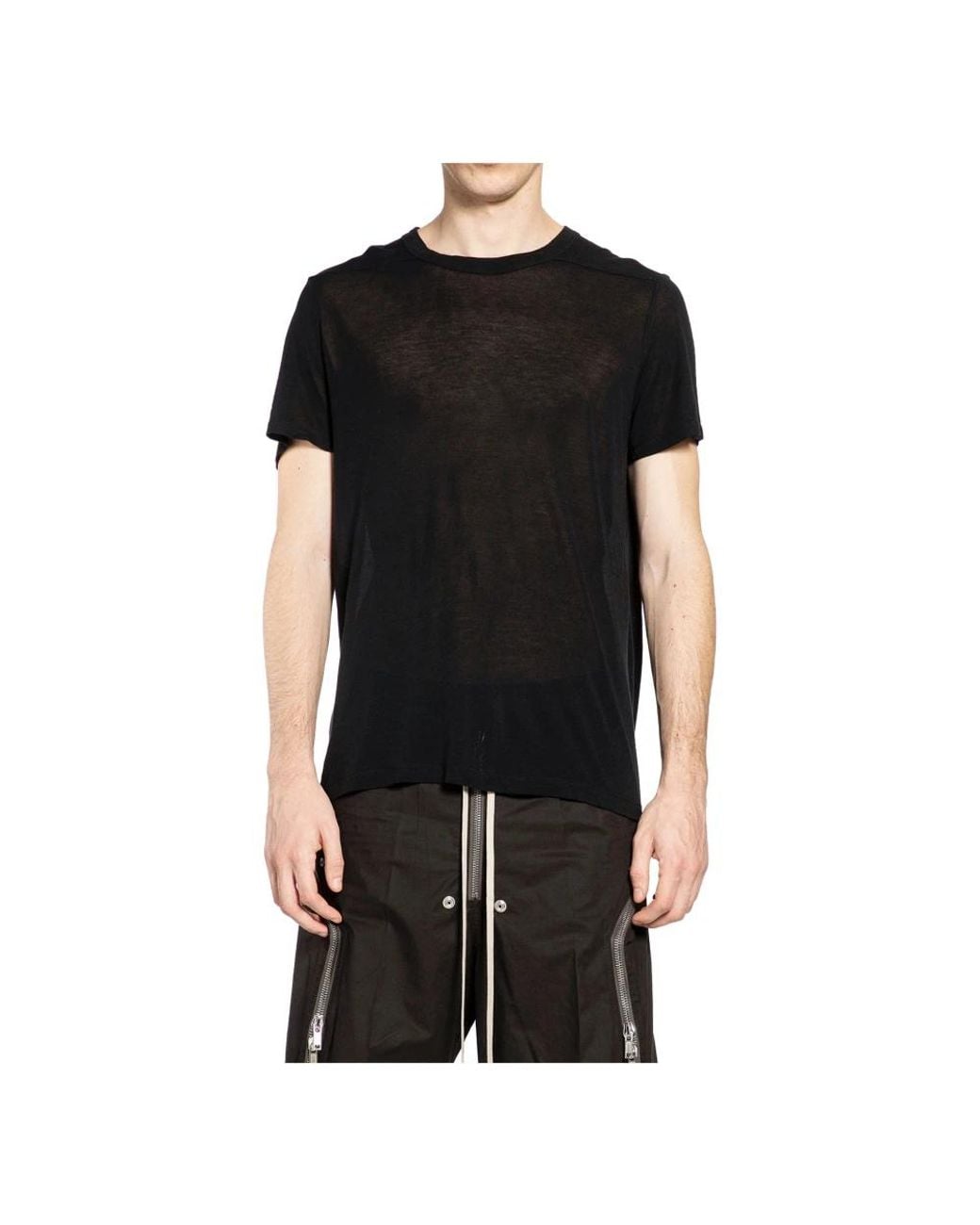Rick Owens Short Level T updates the classic crew T-shirt with signature level shoulder seams and a central back seam, creating a modern, structured silhouette ideal for elevated everyday wear. Key attributes: Black | Cotton | Short sleeves | Ribbed crewneck | Signature front level shoulders | Central back seam | Distinctive back detail | Dimensions & fit: Regular fit | Model is 190 cm and is wearing size M | Composition & care: 100% cotton Colour: black