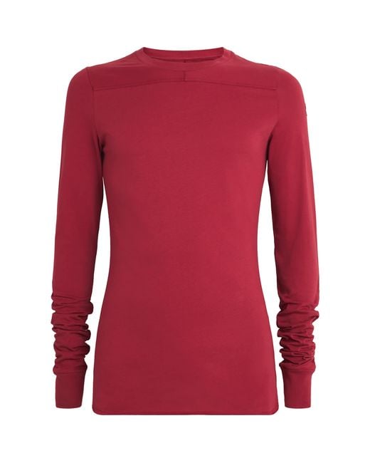 For his latest collaboration with Moncler, Rick Owens channels his avant-garde tendencies into wearable pieces including this Girder T-shirt. Woven from lightweight cotton, the long-sleeve design bridges Moncler’s modern ease with the Lord of Darkness’ trademark details, such as a centre back seam and a raw-finish hemline. Colour: red