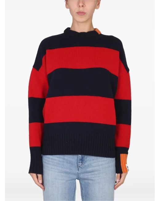 Wool Striped Crewneck Jumper - Red