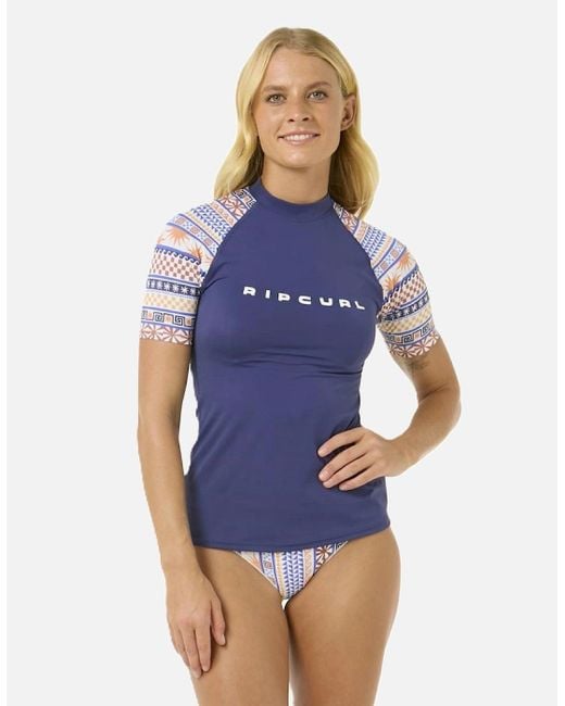 Women's Blue Rip Curl San Carlos Upf Short Sleeve Rash Vest