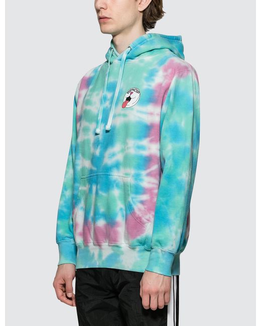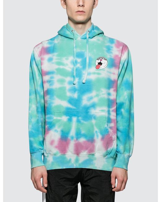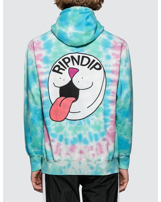 RIPNDIP - Pill Hoodie- Long sleeves- Tie Dye design in Blue, Green, Pink and White colorway- Printed graphics on left chest and back- Ribbed cuffs and hem- Kangaroo pocket- 100% Cotton. Colour: blue