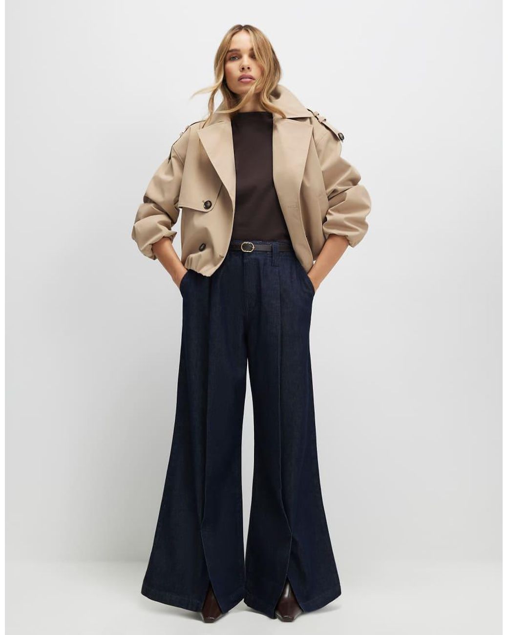 Belted Split Hem Wide Leg Jeans