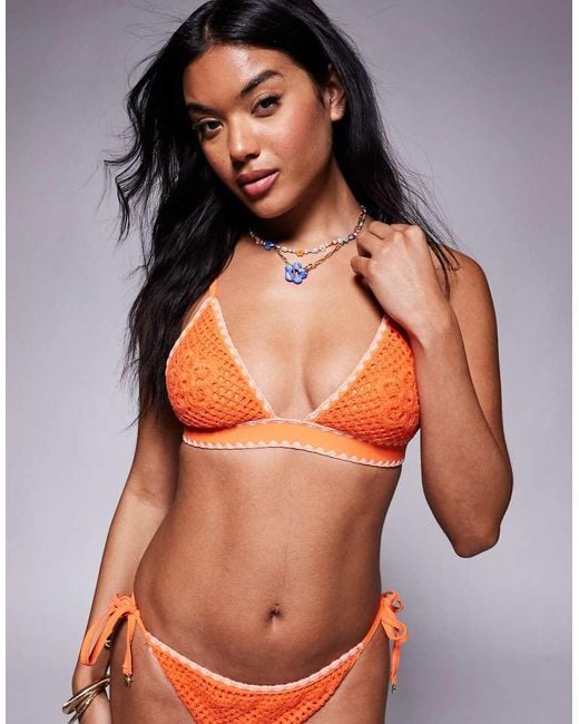 Women's Orange Crochet Triangle Bikini Top