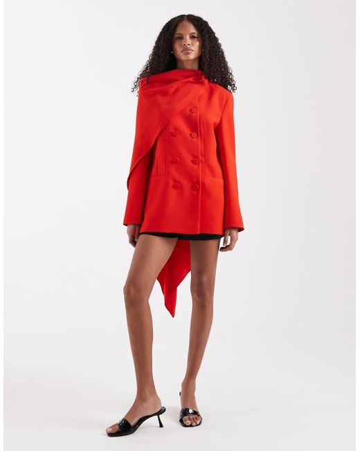 Women's Red Double Breasted Cape Detail Blazer