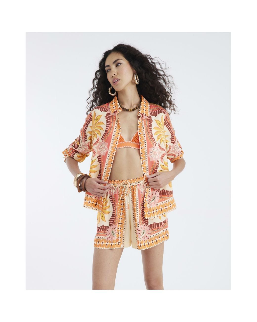 - Long Sleeve Graphic Print Shirt Viscose