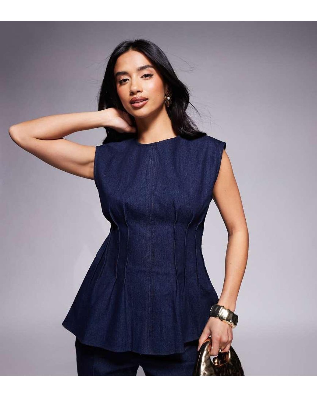 Women's Blue Pintuck Denim Poplin Top Co-ord