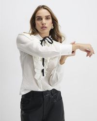 Tops by River Island Spread collar Tie neck Button placket Long sleeves Ruffle details Regular fit Colour: white