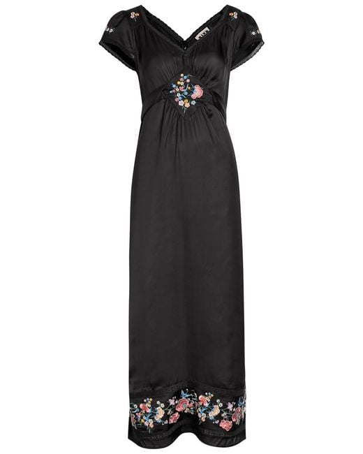 Women's Black Carey Embroidered Satin Midi Dress