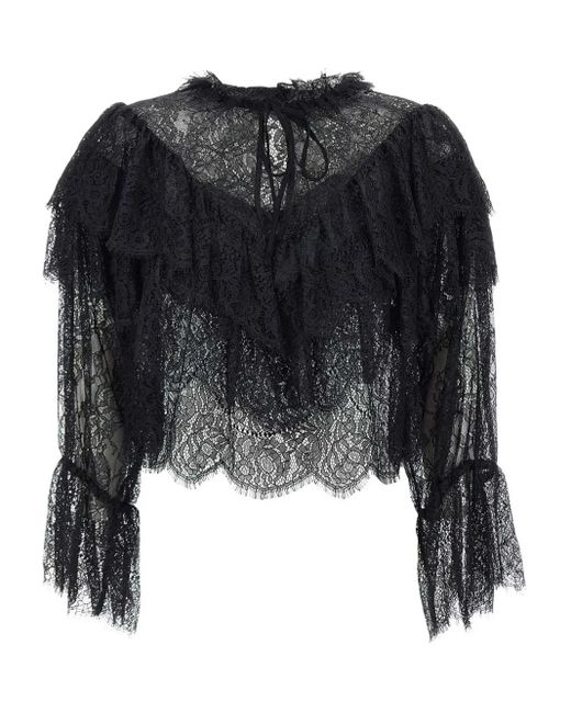 Black lace ruffled hems tie neckline long sleeves elasticated cuffs Size: 10. Gender: Female. Material:Polyamide. Colour: black
