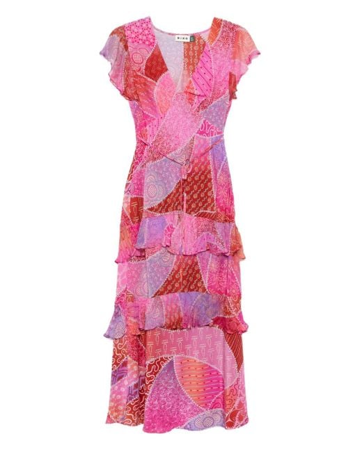 - Patchwork Ruffled Midi Dress