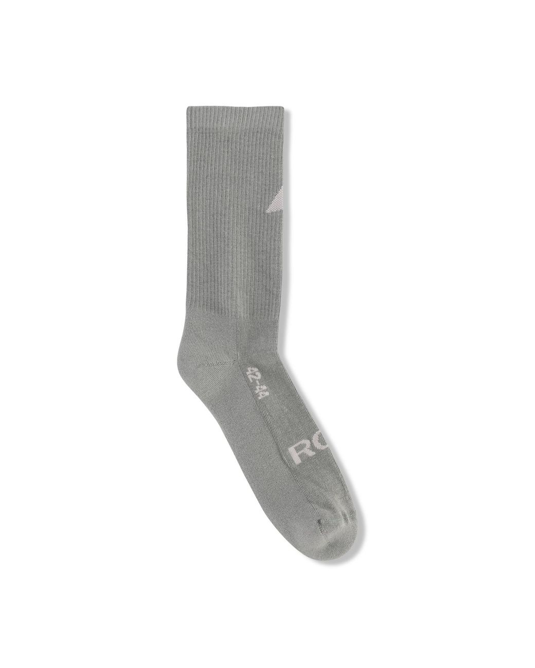 Calf-high logo socks in olive colour. Features a blend of Biofil® cotton, Tecnoyard, polyamide, and elastane fibres for durability and breathability. Contrasting logo graphic at the foot, on the front and back leg. Made in Italy. Colour: grey