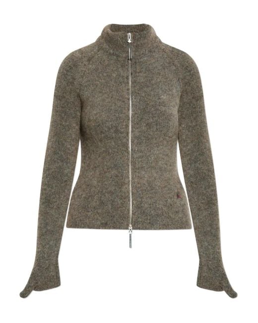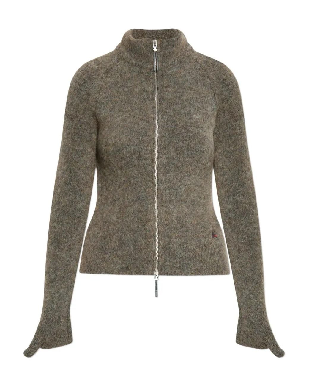 Beige two-way zipper high neck long sleeves covered thumb detailing Size: S. Gender: Female. Material:Kid Mohair/Polyamide/Virgin Wool. Colour: green