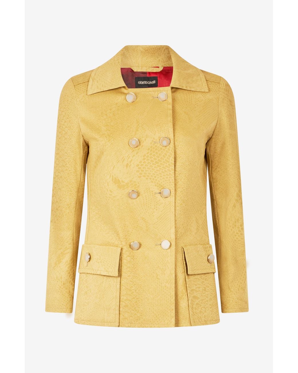 Women's Yellow Double-Breasted Jacket With Python Pattern