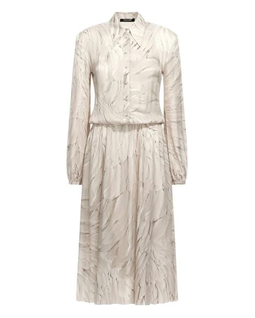 - Feather-Print Midi Shirt Dress