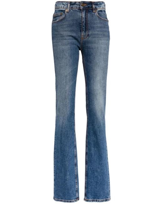 Blue stretch-cotton denim embroidered logo to the rear high-rise belt loops concealed fly and button fastening classic five pockets straight leg Size: 40. Gender: Female. Material:Cotton/Elastane. Colour: blue