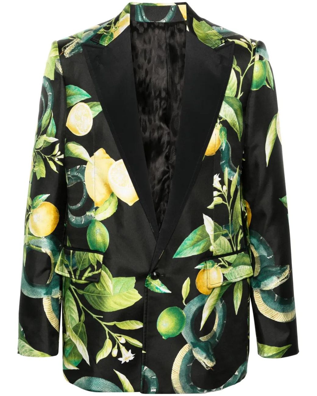 Men's Green Lemon-Print Silk Blazer