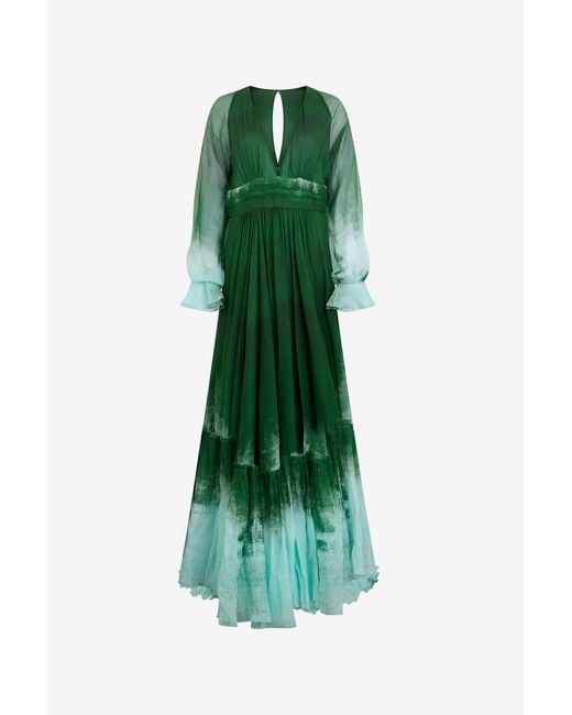 Women's Green Long Empire-Style Pure Silk Dress