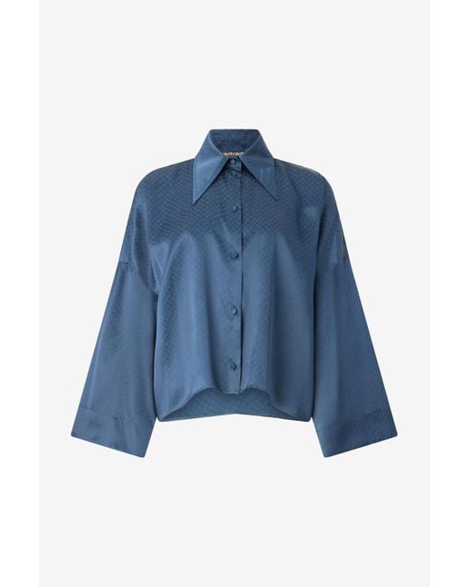 Women's Blue Silk Shirt With Snake-Effect Pattern