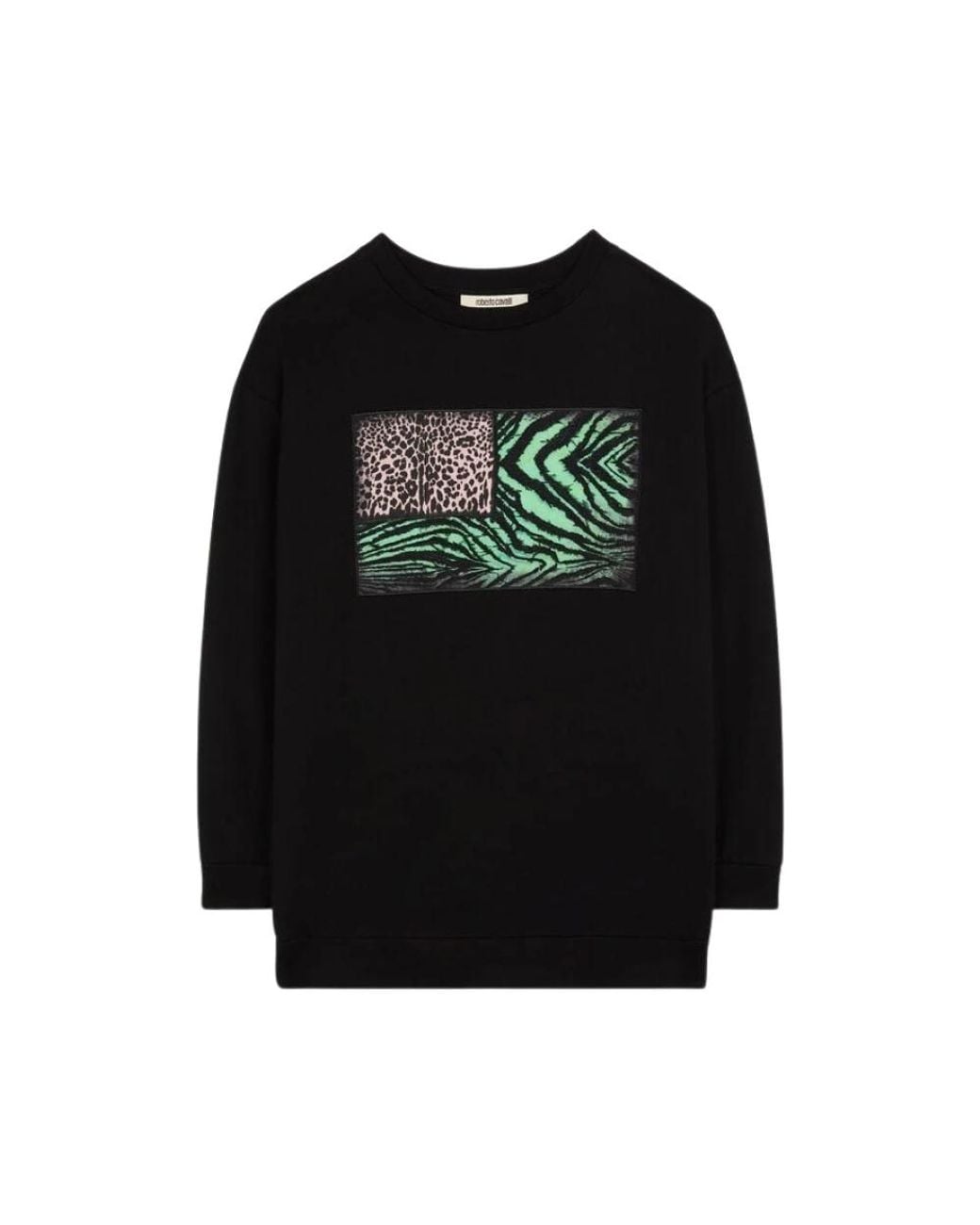 Elevate your style with the Roberto Cavalli Patchwork Animalier Sweatshirt, featuring a striking animalier patchwork-print appliqué. This relaxed fit sweatshirt is crafted in Italy, offering both comfort and a bold fashion statement. Key attributes: Black | 100% Cotton | Crew neck | Drop shoulders | Long sleeves | Logo patch at the nape | Dimensions & fit: Relaxed fit | Composition & care: 100% Cotton | Machine wash cold, tumble dry low. Colour: black