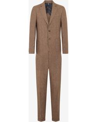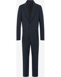 Go to Roberto CavalliBlue suit composed of a single-breasted jacket and matching trousers. Crafted from fine flax, a naturally breathable and lightweight fabric ideal for warmer seasons. Jacket with notched lapels, two-button closure, and distinctive patch