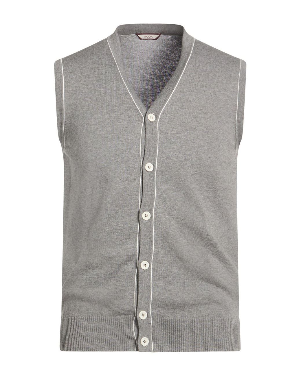 RODA. knitted, lightweight knit, piped trims, plain colour, sleeveless, button fastenings, hand wash or dry clean, do not bleach, do not tumble dry, this brand runs small. 100% Cotton.