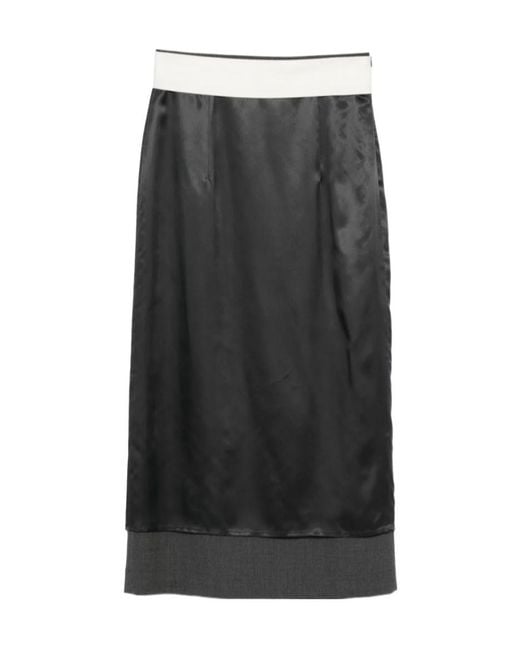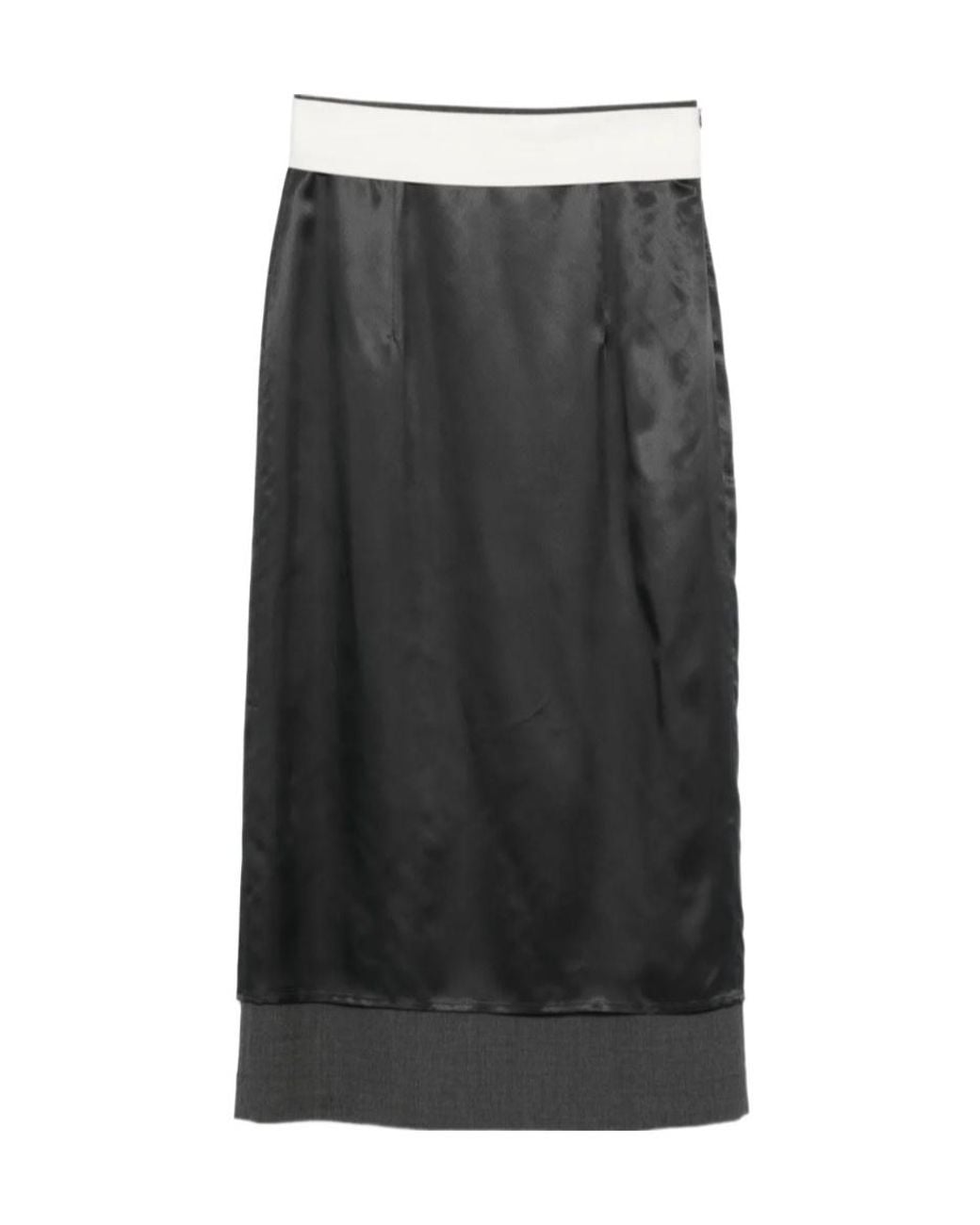 Colour block design high-waisted rear slit knee length concealed zip fastening Colour: grey