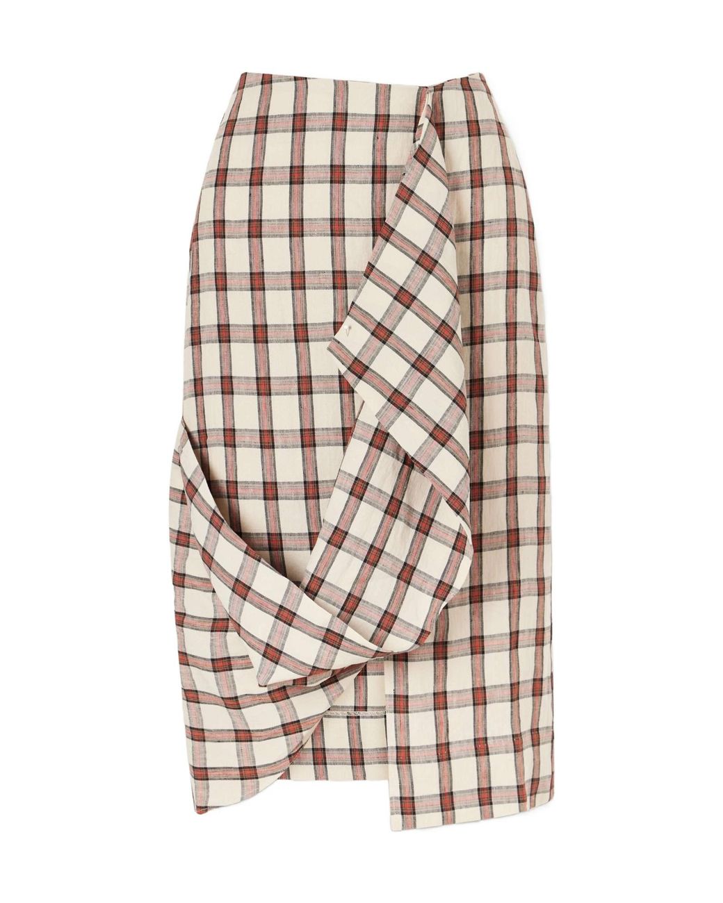 Draped Check Midi Skirt
