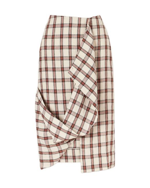Draped Checked Linen Skirt - Natural