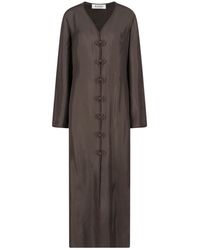 Go to Italist- Maxi dress "Pankou" Róhe in brown silk - V-neck - long sleeves - "Pankou" front closure detail - a front slitComposition: 100% Silk Colour: brown