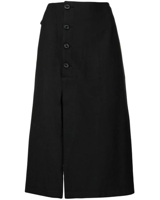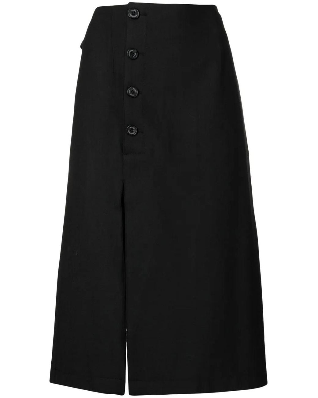 Women's Black Button-Detail Midi Skirt