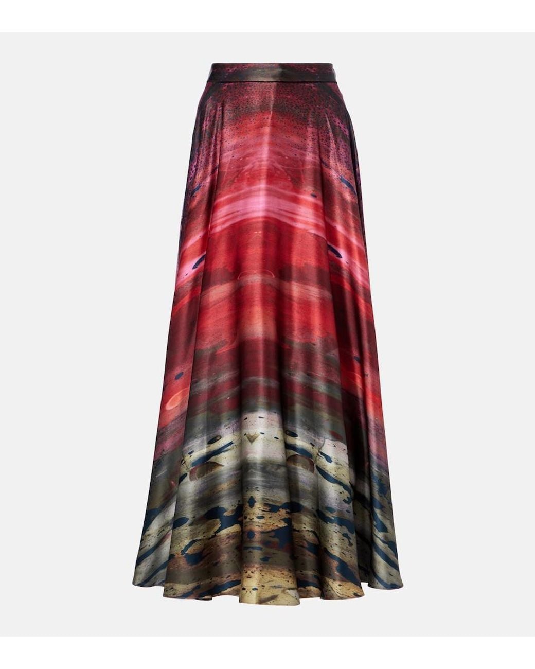 Ameera Printed Silk-Satin Midi Skirt - Red