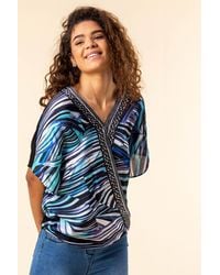 Roman Women's Blue Abstract Print Border Pleat Top