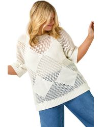 Go to Roman OriginalsCurve Metallic Diamond Knit Top by Roman UK Shimmer in style with this round neck short sleeve jumper featuring an elegant diamond knit design The thick ribbed details around the hem neckline and