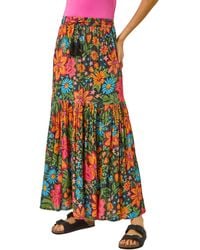 Go to Roman OriginalsFloral Crinkle Cotton Tiered Maxi Skirt by Roman UK Designed in a breathable cotton blend fabric this tiered skirt is the perfect style for the warmer Summer months Adorned in a bohemian inspired