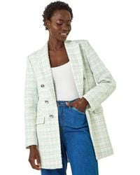 Go to Roman OriginalsLongline Chequered Boucle Jacket by Roman UK Embrace effortless sophistication with this chic longline check boucle jacket Featuring a stylish edge to edge front opening with button detailing a smart collar revere design