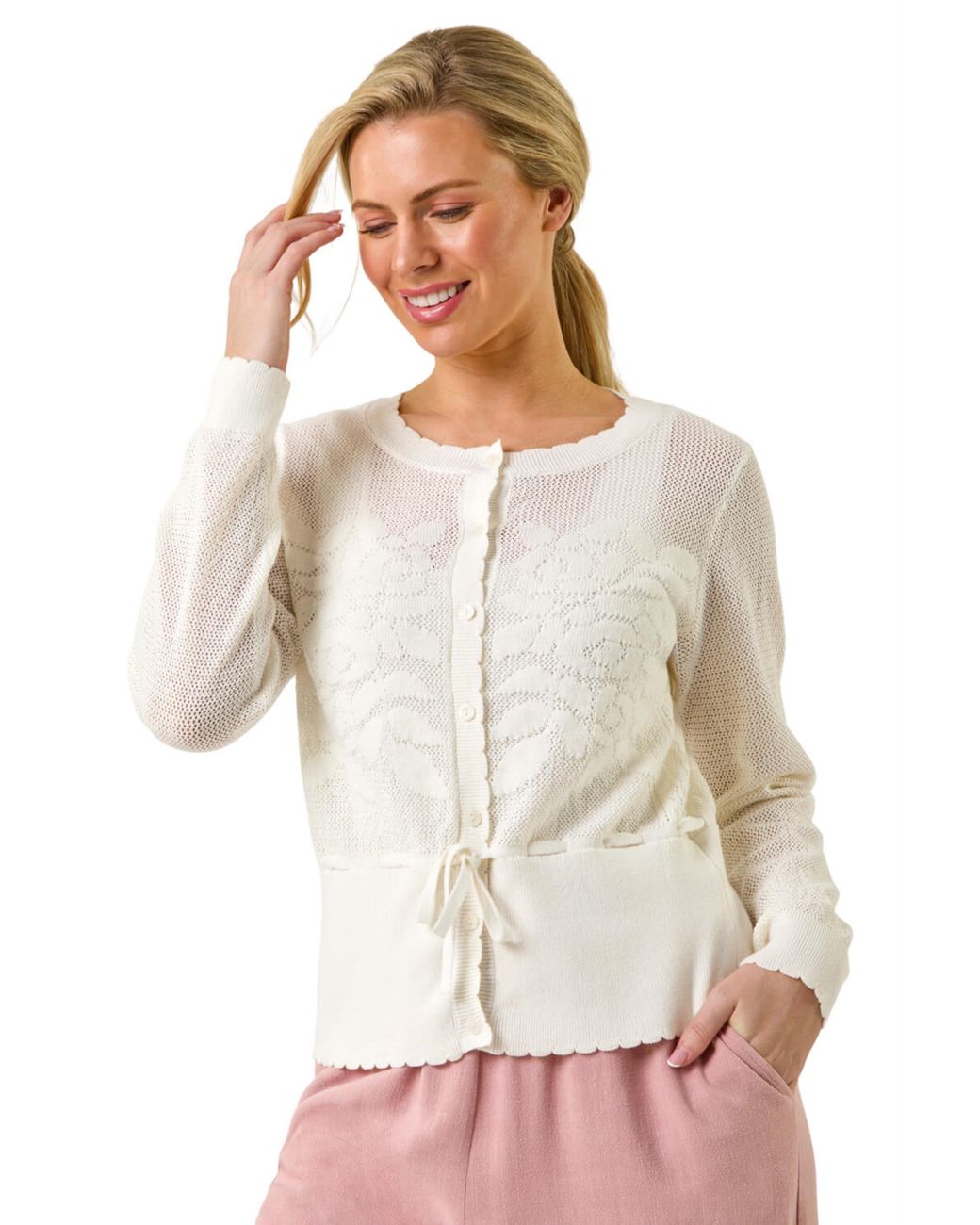 Petite Floral Button Up Cardigan from Roman. Get ready to embrace the florals this Spring Summer with this charming Petite button-up cardigan. Crafted from a soft cotton knit fabric, featuring a flattering round neckline and long sleeves, this cardigan is sure to become a staple piece in your wardrobe. The front button-through design with tie detail adds a touch of elegance, while the beautiful floral print adds a pop of colour to your outfit. Simply pair with jeggings for a complete and stylish look. Colour: white