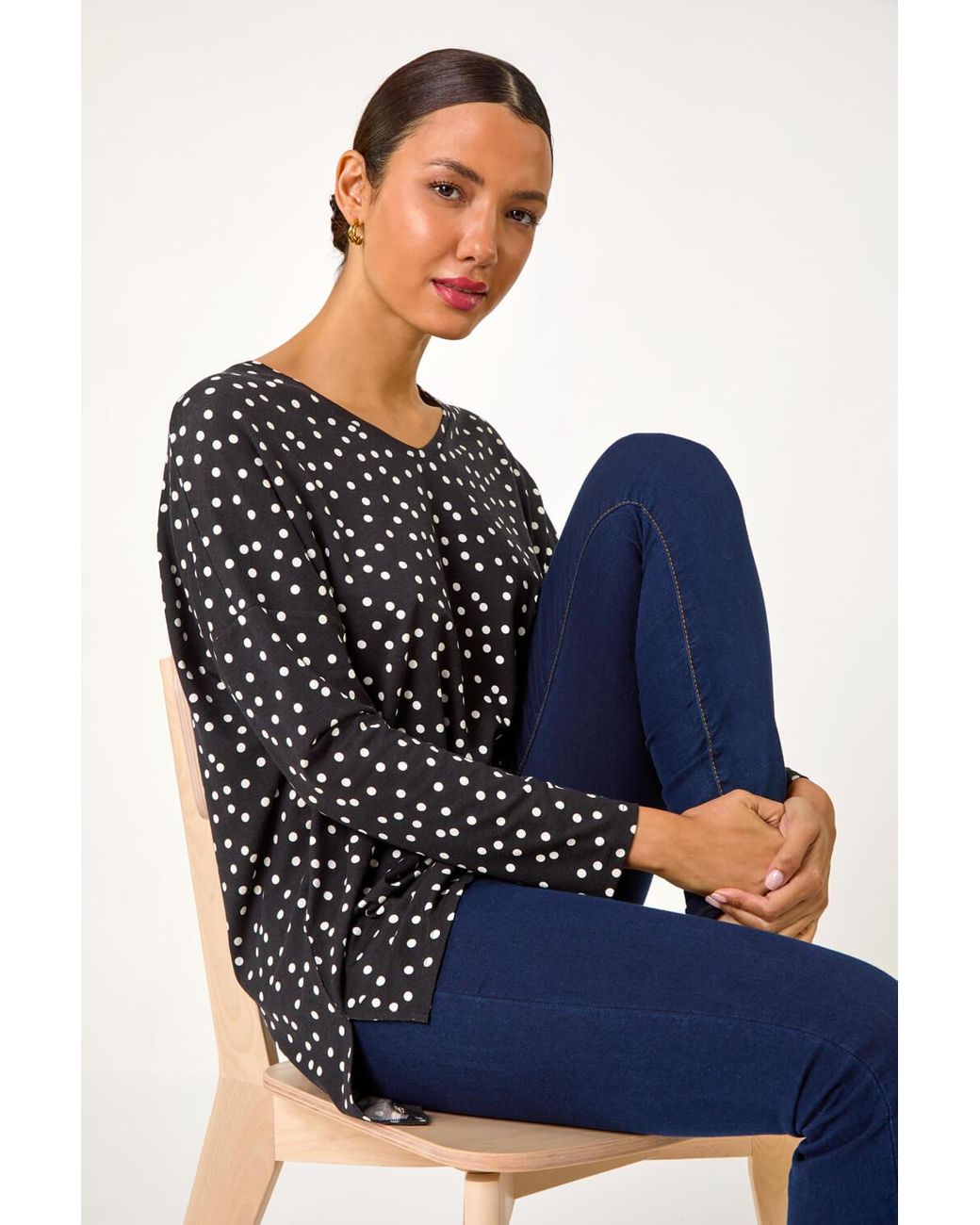 - Spot Print Stretch Tunic Top