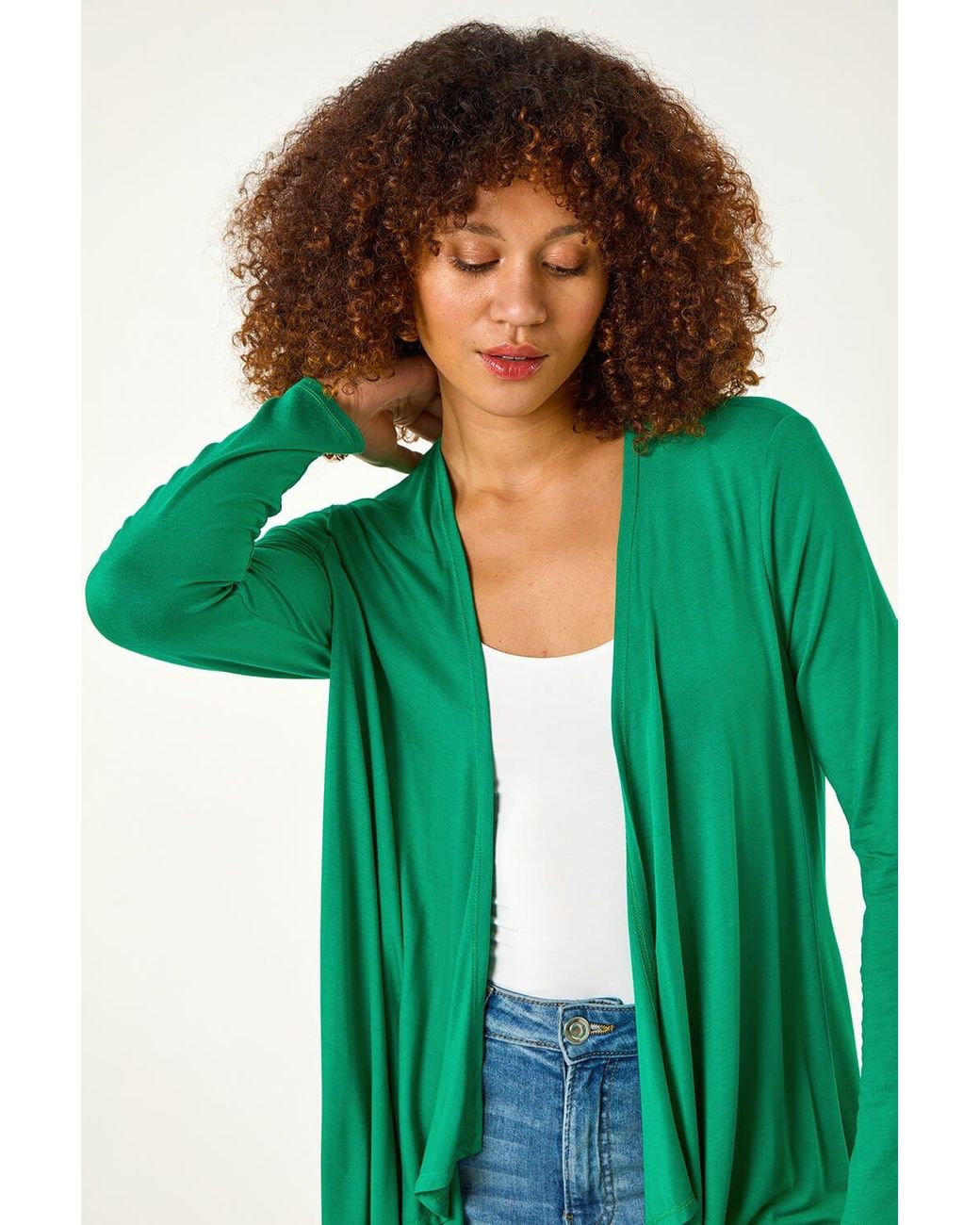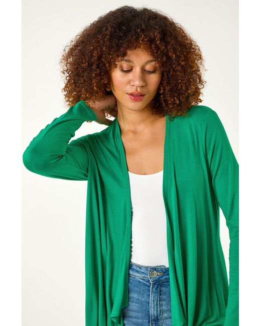 Waterfall Front Jersey Knit Cardigan by Roman UK This lightweight waterfall cardigan is perfect for layering featuring long sleeves and an edgetoedge design for a sleek openfront style Falling below the hip it offers a flattering flowy silhouette that pairs effortlessly with a tshirt and jeans Ideal for a relaxed yet stylish spring and summer look Womens Regular fit True to size 96 Viscose 4 Elastane Machine Washable Length Approx 69cm 96 Viscose 4 Elastane Colour: green