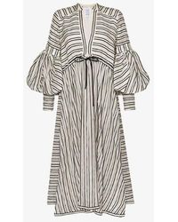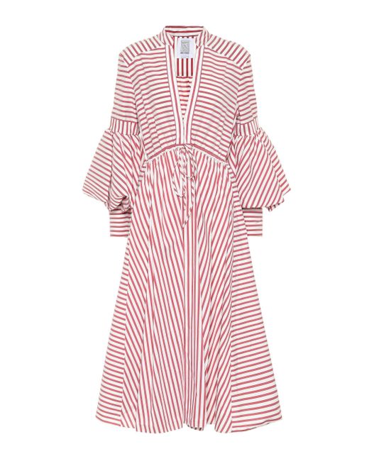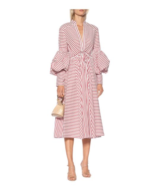 Rosie Assoulin makes stripes couture with the Lantern cotton-blend midi dress. Colour: red