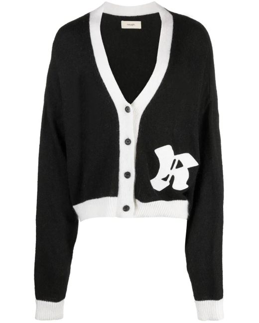Black/white knitted construction logo patch to the front V-neck front button fastening long sleeves ribbed cuffs and hem Size: XS. Gender: Male. Material:Polyamide. Colour: black