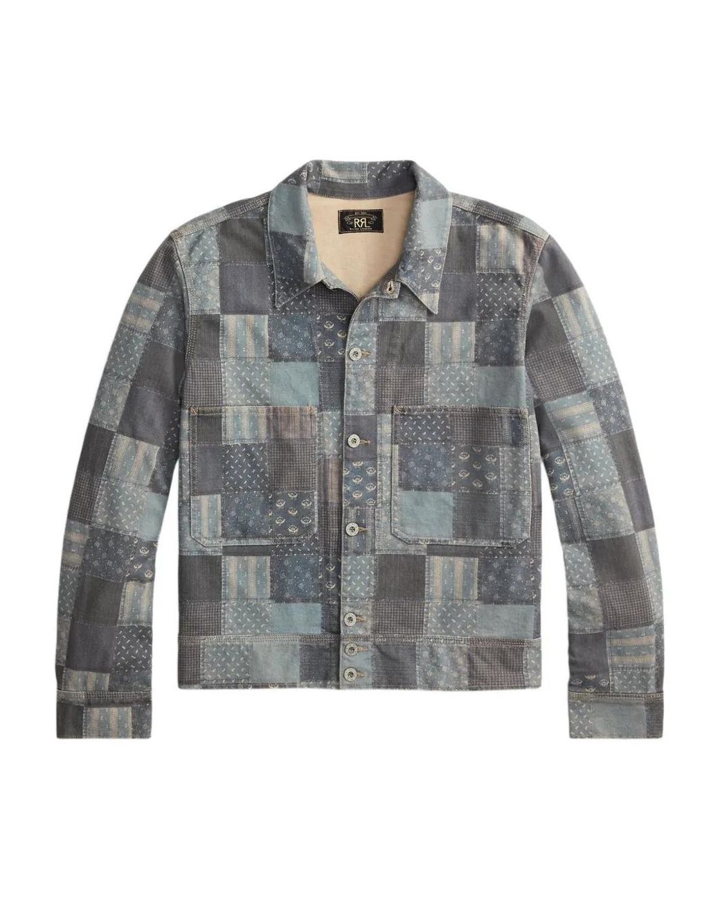 Navy blue patchwork design button fastening long sleeves chest pockets buttoned cuffs Size: S. Gender: Male. Material:Cotton. Colour: grey