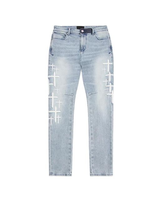 Bryant Embroidered-Cross Jeans - Blue