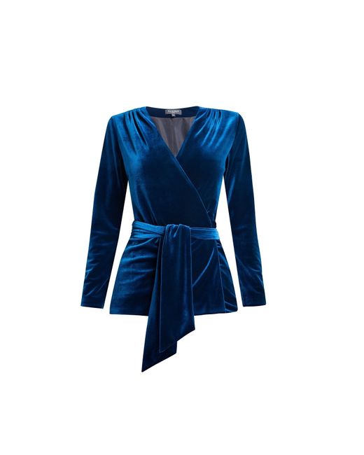 Women's Blue Evelyn Velvet Wrap Jacket With Self-Tie Sash
