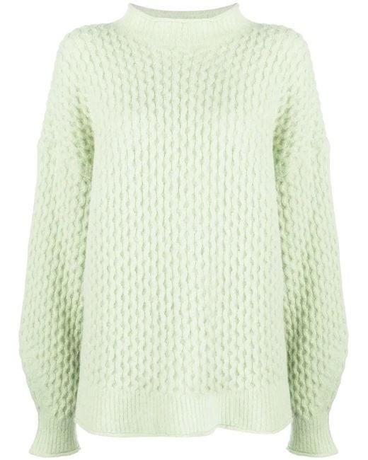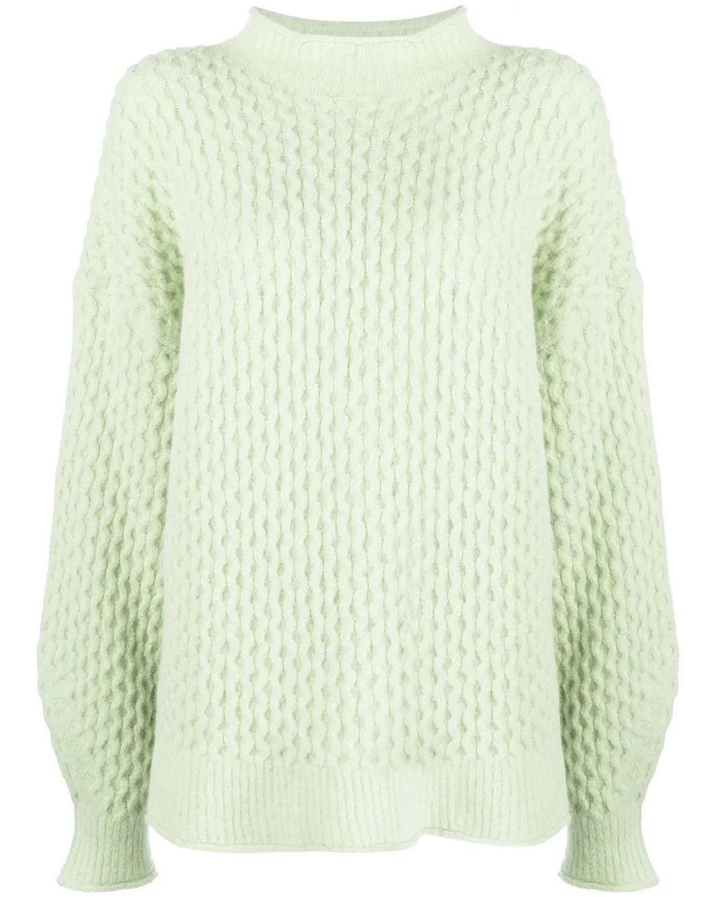 Women's Green Textured-Knit Mock Neck Jumper